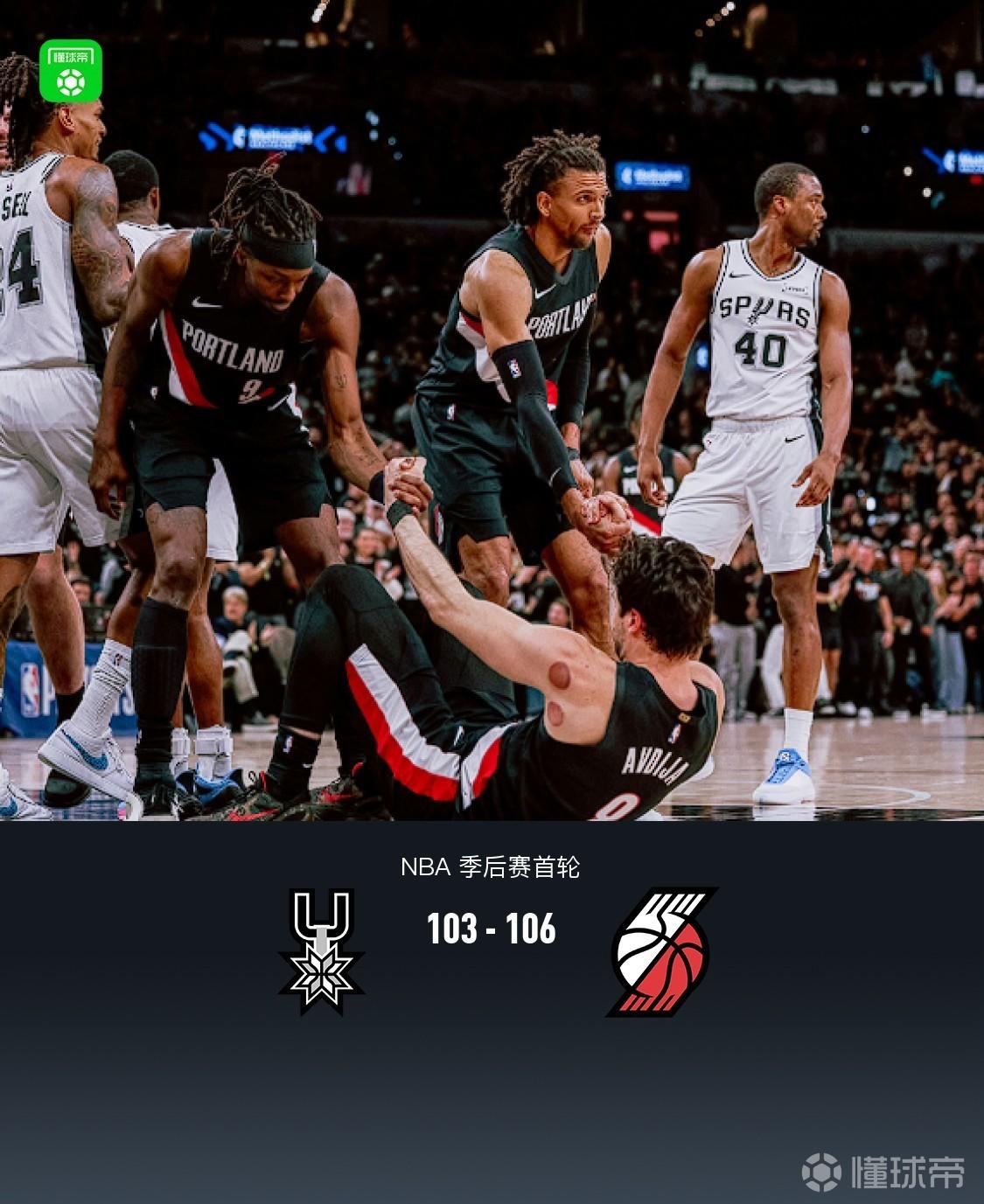 开拓者106-103末节逆转马刺1-1扳平 文班亚马伤退