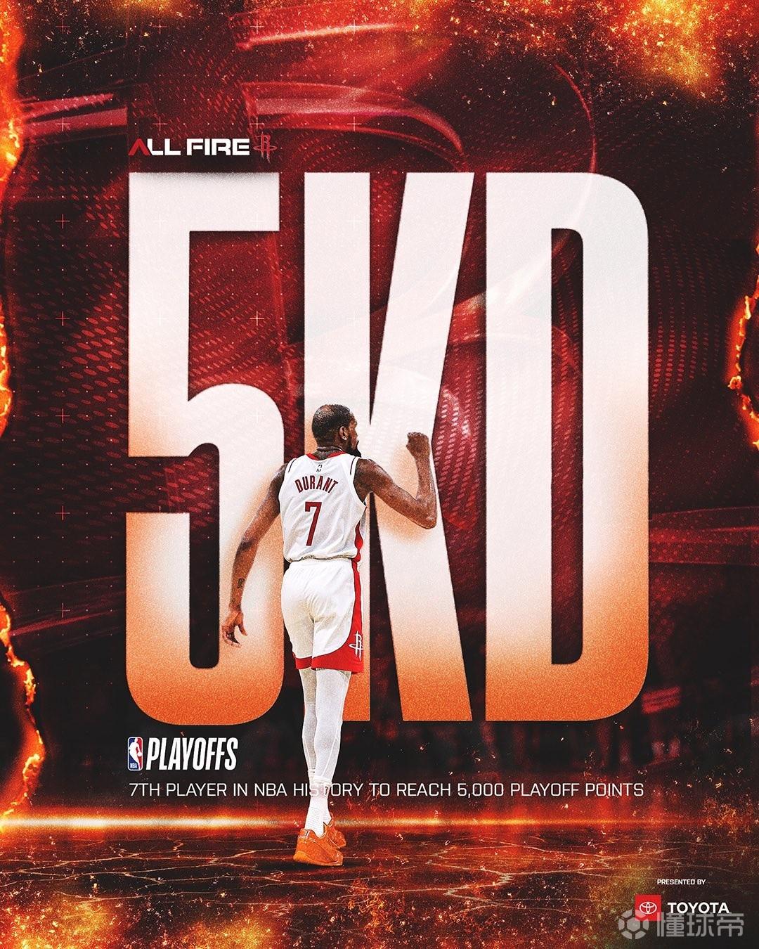 杜兰特加冕季后赛5000分先生,历史第七&现役第二人