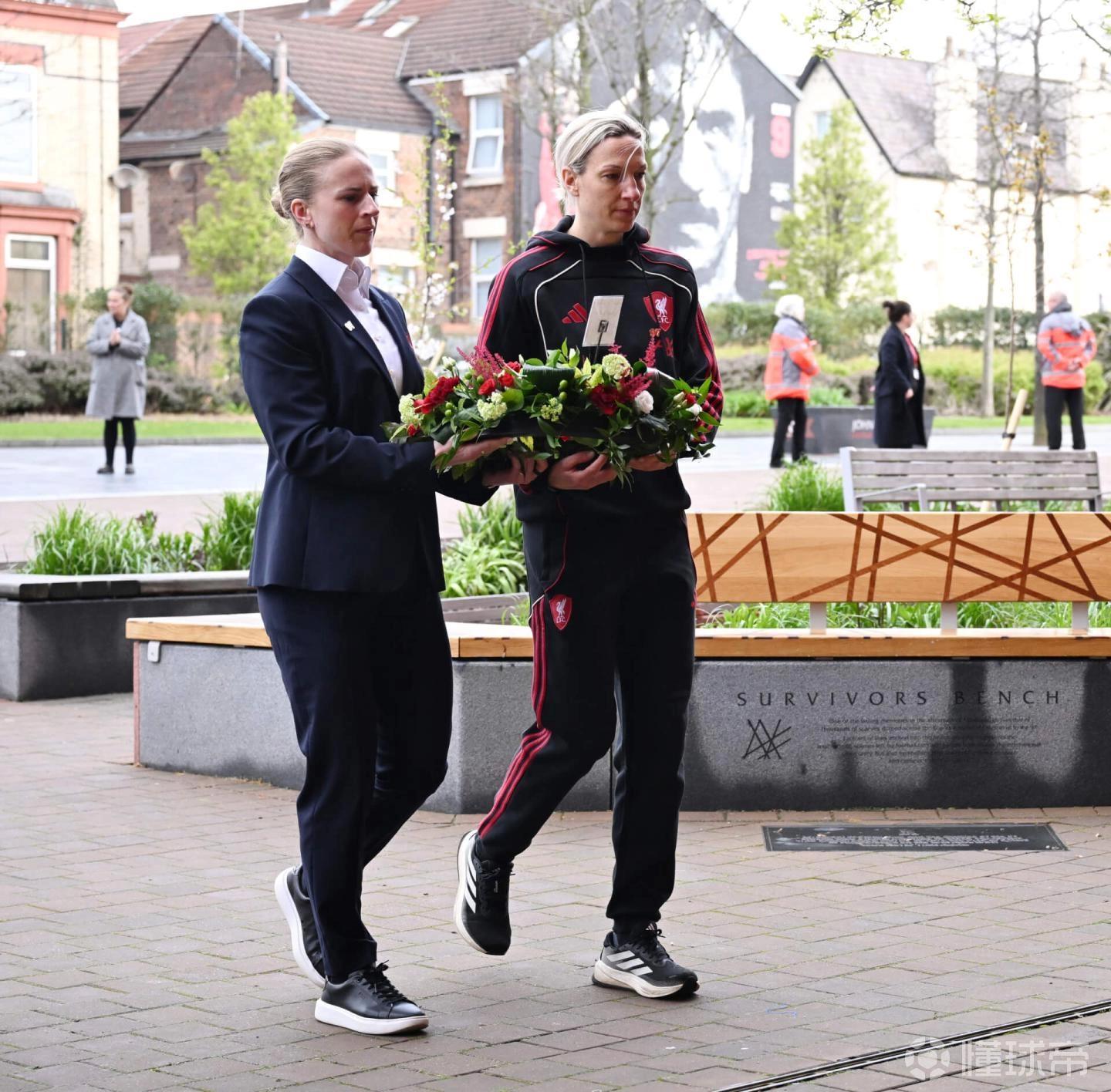 为表达哀思,利物浦一线队、女队以及U21、U18梯队的主教练和队长范戴克今日前往安菲尔德的希尔斯堡纪念碑献上花圈。俱乐部高层也参与其中,包括首席执行官比利-霍根、传奇球星达格利什爵士,以及俱乐部大使伊恩-拉什和娜塔莎-道伊。