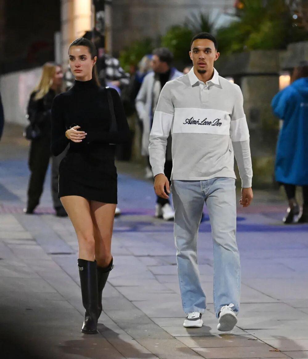 回首亚历山大-阿诺德与埃丝特尔的结缘,多少有些空窗期的冲动成份在内。2024年秋天,当时的利物浦右闸刚和前女友、英伦老牌男星裘德·洛的女儿艾瑞斯分手,比赛之外略感无聊的他,刷社媒时看到了埃丝特尔环球旅行的照片,并在下方点了赞,没过多久“点赞之交”就神速奔现。10月下旬,两人前往科茨沃尔德,入住每晚6000英镑的五星级Soho Farmhouse酒店,享受了一次浪漫之旅。然而,浪漫之旅的保密工作却着实做的不怎么样,两人都在私人会员俱乐部的帖子中标记了自己,同时也被俱乐部的其他会员察觉,顺藤摸瓜发现了他们的行迹。