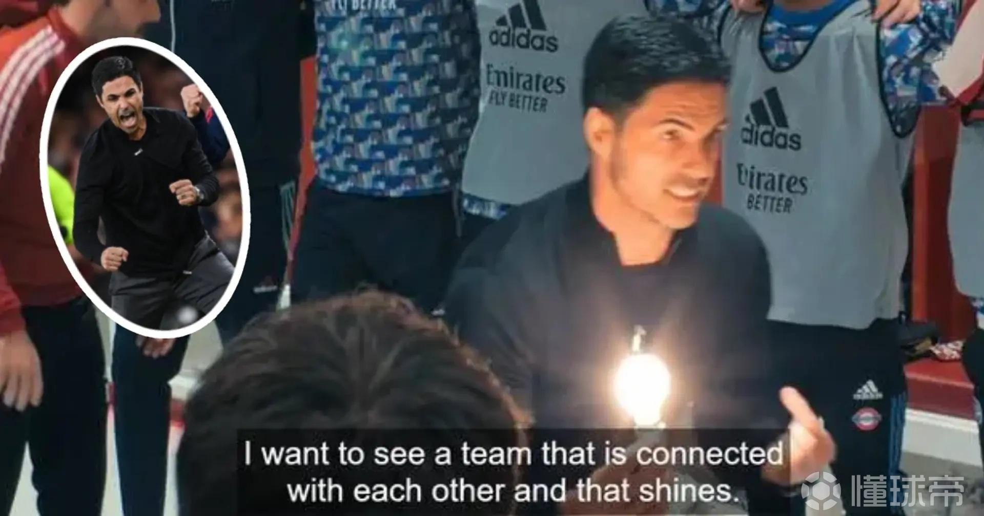 阿尔特塔早已堪称足坛“鸡汤大师”,最经典的一幕是纪录片《孤注一掷:阿森纳》中,他拿着一个灯泡在赛前训话,对球员们说“去场上把那该死的灯点亮”。想象一下,你正准备上场踢球,主教练突然掏出个灯泡在你眼前晃,你会觉得他是天才还是忘吃药了?