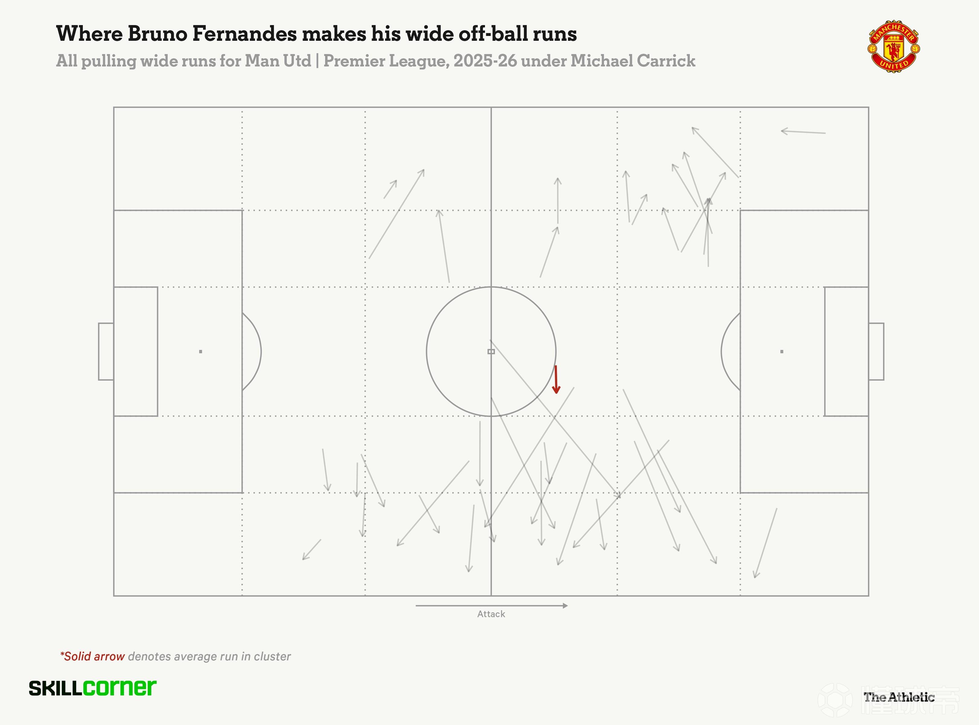 然而,正是卡里克自1月接替被解雇的阿莫林以来赋予前场四人组的自由度,让费尔南德斯得以游弋到边路区域,与队友形成配合或攻击空当。