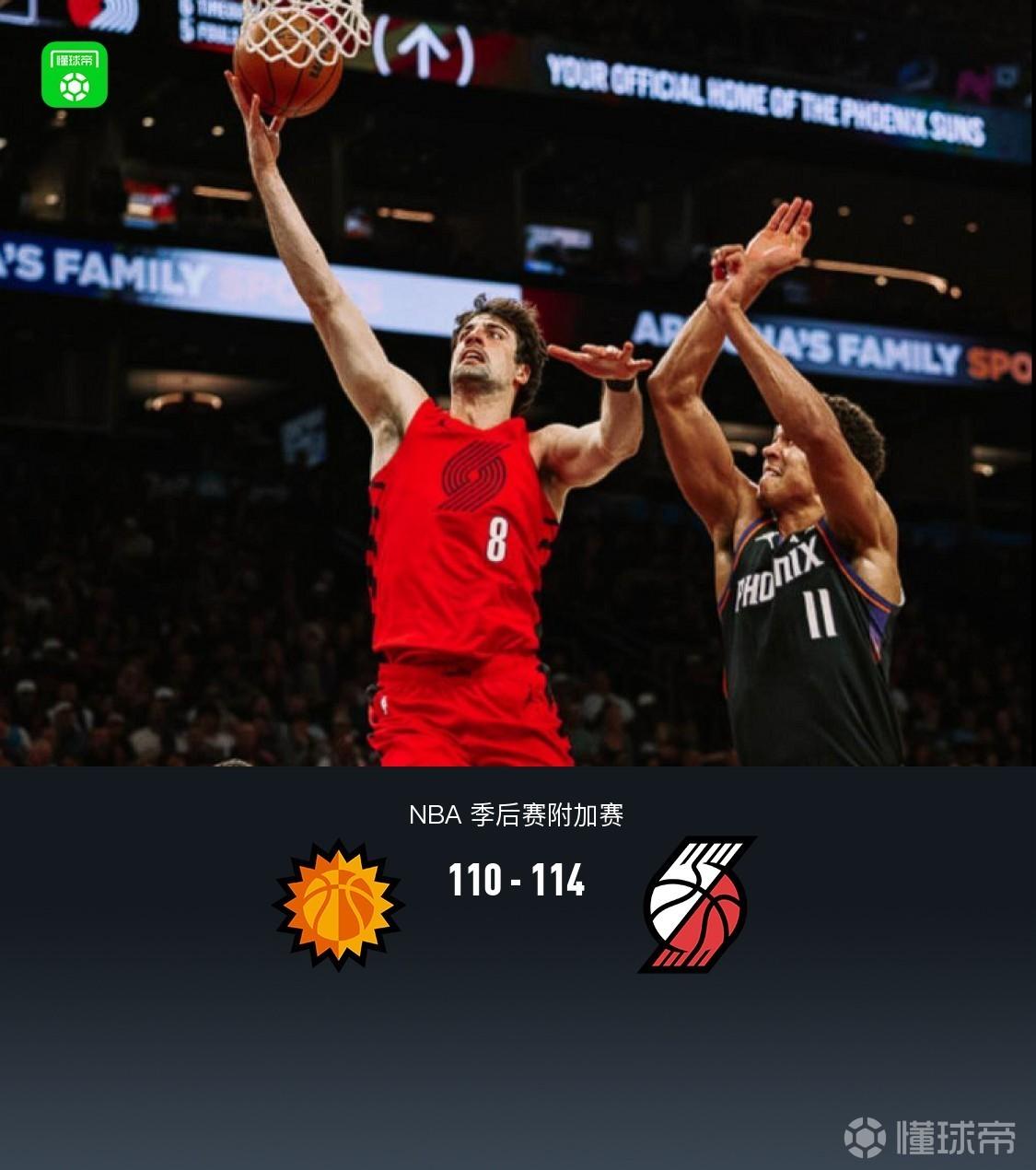 北京时间4月15日NBA 季后赛附加赛,西部第七菲尼克斯太阳对阵西部第八波特兰开拓者。本场杨瀚森随队出战但并未获得出场机会。首节双方紧咬比分,次节开拓者一度领先14分,节末太阳反扑追近比分,半场开拓者65-62太阳,第三节上来开拓者再度领先两位数,随后太阳持续反扑末节一度反超10分,随后阿夫迪亚、格兰特领衔追上比分,最后阶段双方持续冲框交替领先,阿夫迪亚打进关键2+1反超2分,太阳格林绝杀三分不中,格兰特反击暴扣杀死比赛,最终开拓者114-110险胜太阳,开拓者以西部第七晋级季后赛。