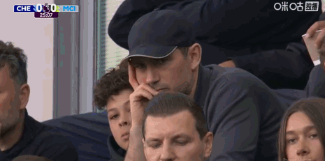 第26分钟,镜头给到场边,兰帕德看台观战