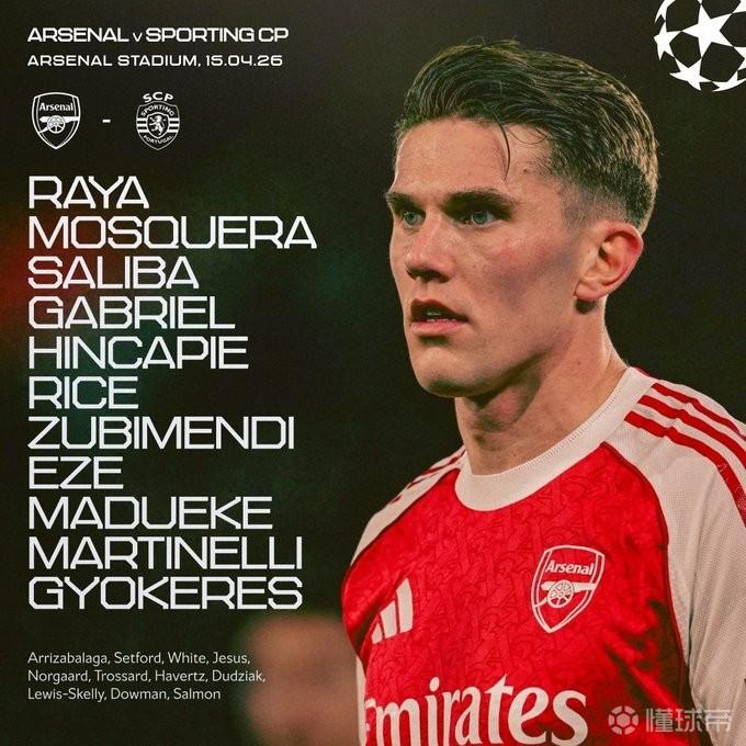 北京时间4月16日03:00,欧冠1/4决赛次回合,阿森纳坐镇酋长球场迎战葡萄牙体育。赛前,双方公布首发阵容。